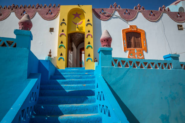 Nubian village is colorful houses, built according to Nubian architecture from mud bricks which are a mixture of clay, water, hay, and sand. All of these materials are natural which make less prone to house diseases, inexpensive, and the clay texture of the bricks is also less affected by heat. Over each house, you will find a dome-shaped ceiling designed to distribute the sun’s heat equally throughout the inside of the house. Moreover, the Nubian people love to decorate their houses using simple yet delightful colors; not only that, they commonly draw shapes from the Nubian culture on the walls of their houses, like boats, camels, and palms.